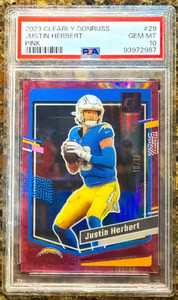 Sale Quick view Add to Cart Remove from Compare Compare Items Justin Herbert 2023 Panini Clearly Donruss Pink 10/10 Jersey Match PSA 10 POP 1 $1,500.00 $999.00